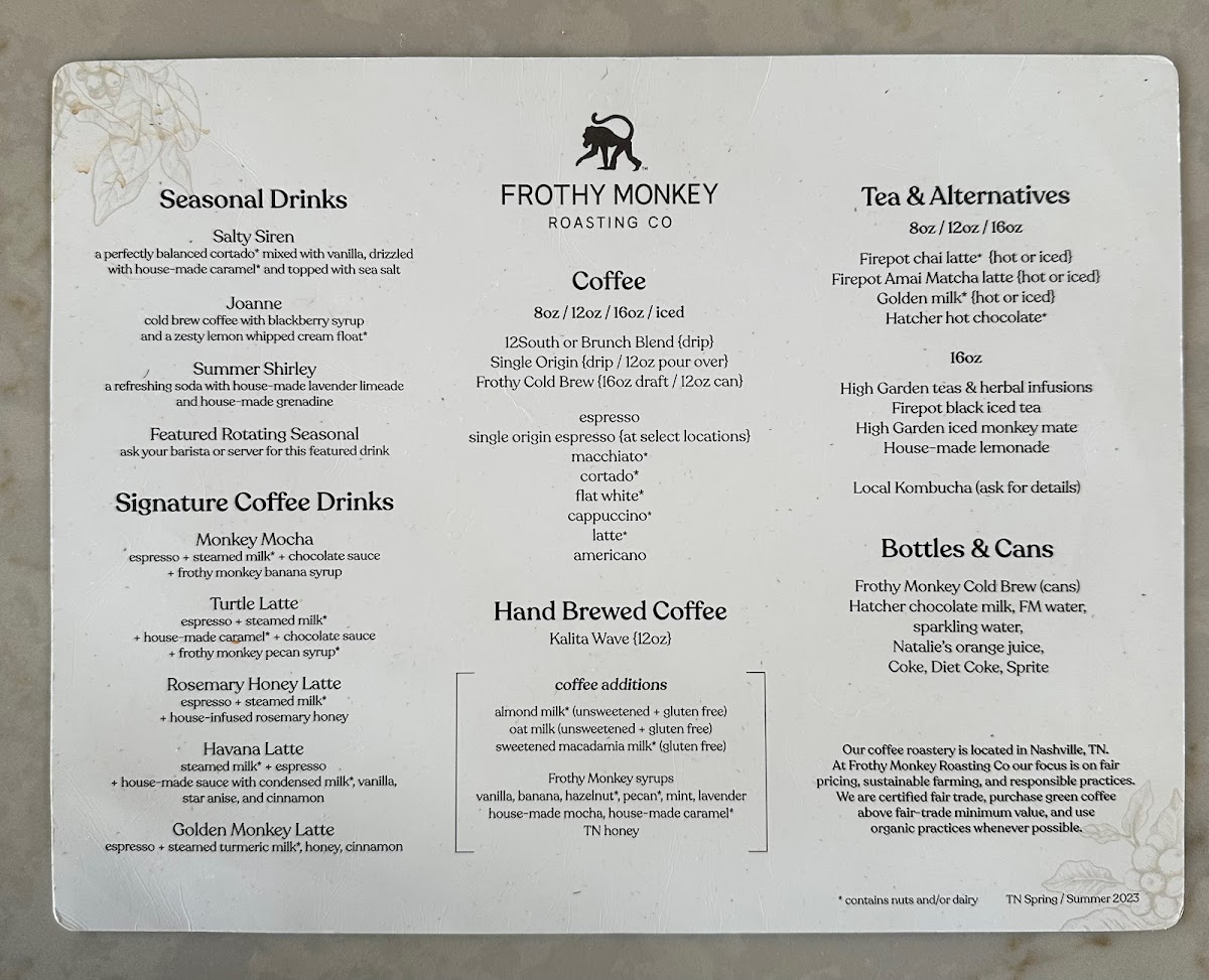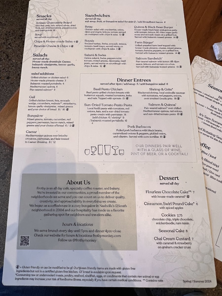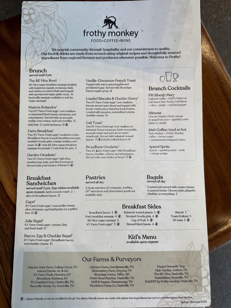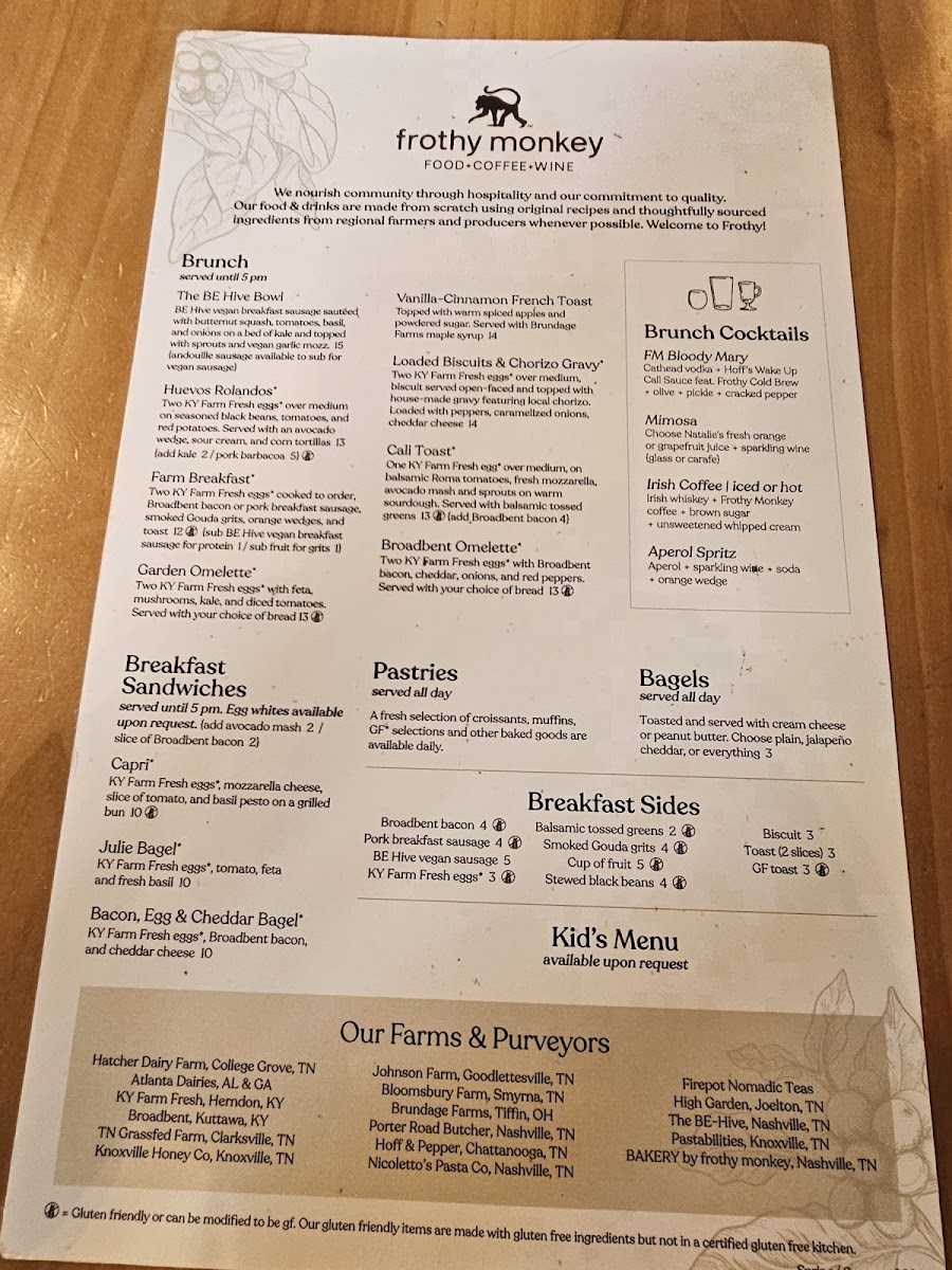 Welcome to Frothy Monkey - Chattanooga, where culinary creativity meets a cozy atmosphere! Nestled at 1400 Market St, this bustling café is known for its inviting ambiance, ideal for solo work or family gatherings. The menu celebrates local flavors with standout dishes like the shrimp and grits and Pork Barbacoa tacos, both of which have garnered excellent reviews for their deliciousness.